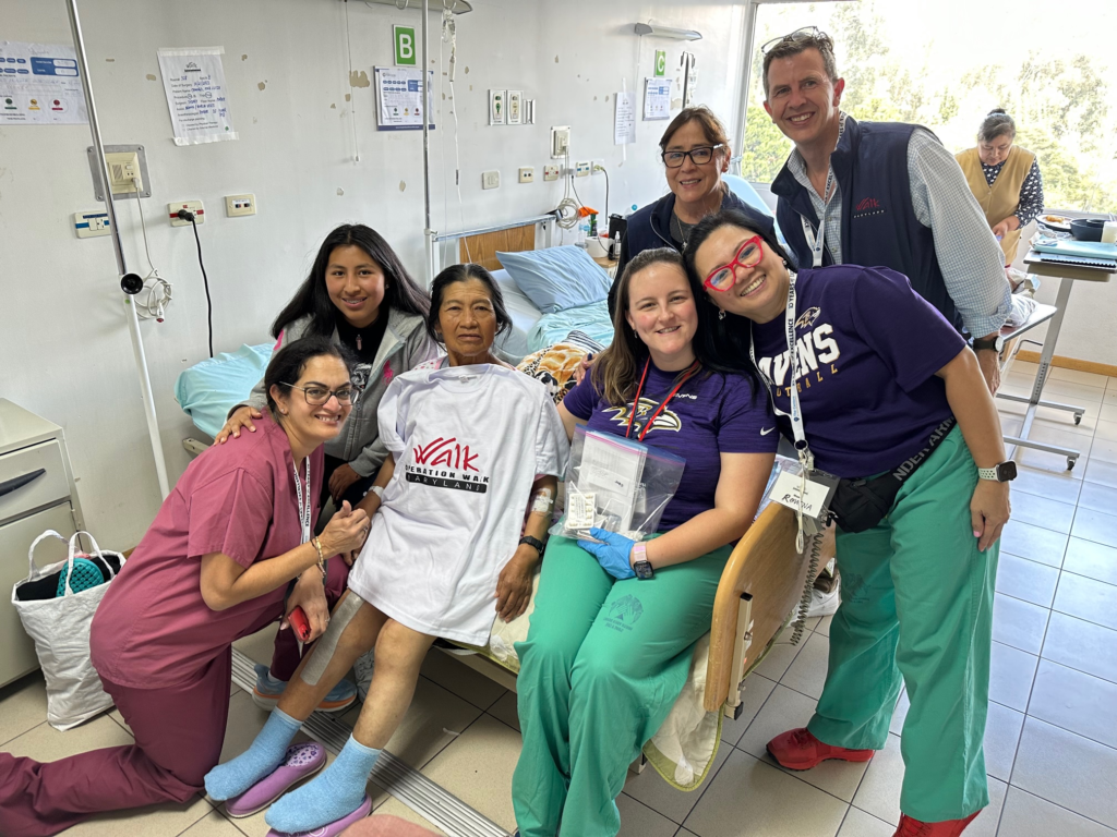 The entire team celebrated our first discharged patient, Niza Analuiza, ready to make her way home just 24 hours after receiving surgery. Pictured below walking out with her granddaughter, Niza received a right knee replacement and looks forward to experiencing life with her family to the fullest, including long walks with her granddaughter